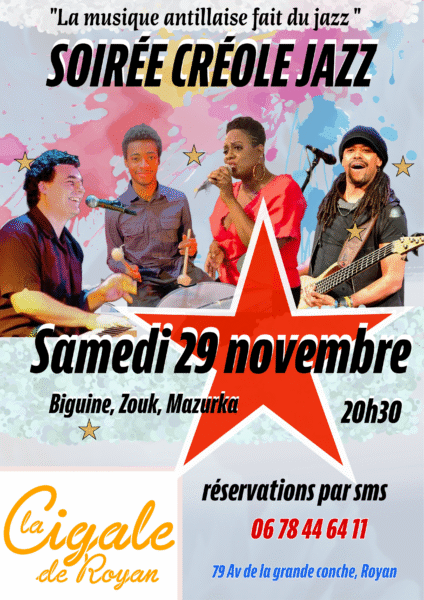 Une soirée festive et ensoleillée avec un quartet explosif composé de trois grands artistes antillais : Myriam Forbin (chant), Dylan Choisi (batterie), Thierry Jean-Pierre (basse), accompagnés par Didier Prossaird (clavier). Le 29 novembre, ils apporteront toute la chaleur des Antilles avec un répertoire mêlant biguine, zouk et mazurka, revisités dans l’esprit du Créole Jazz.